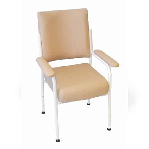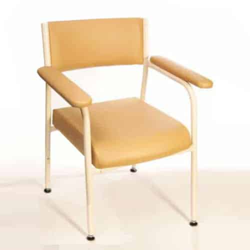 $399.00This fully upholstered adjustable height commode is designed to be discreet and stylish. Generally used within the bedroom environment. Complete with hinged seat, back, arms and skirt, to conceal the commode pan. -