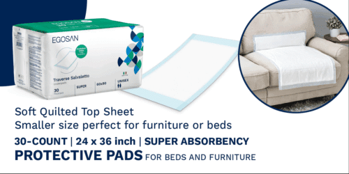 - Heavy absorbency - Egosan's disposable underpads feature a super absorbent core to provide incontinence protection for beds, furniture, floors and other surfaces.