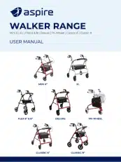 | WAF709660CH | Aspire Flex Adjustable Seat Walker 6″ Wheel – Champagne | 730 mm | 570 mm | 730 – 830 mm | 136 kg | 6.3 kg | Champagne | 360 mm | 430 – 520 mm |