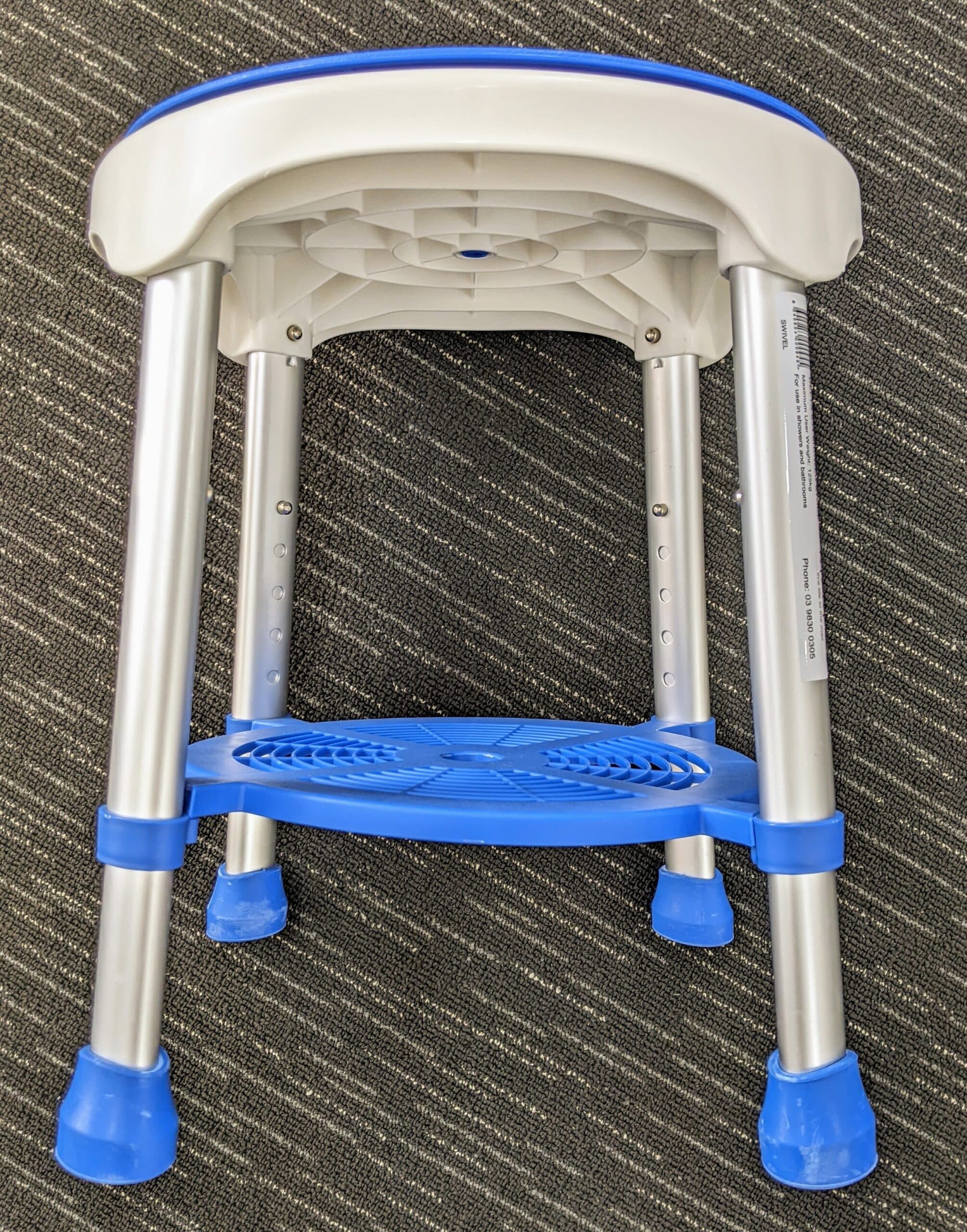 Delta S34 Shower Stool  comes with a removable plastic swivel top, aluminium frame.  height adjustable legs and also comes with a storage shelve under the shower stool.  This Shower stool is  small and compact in size, great for storage / travel purposes.
