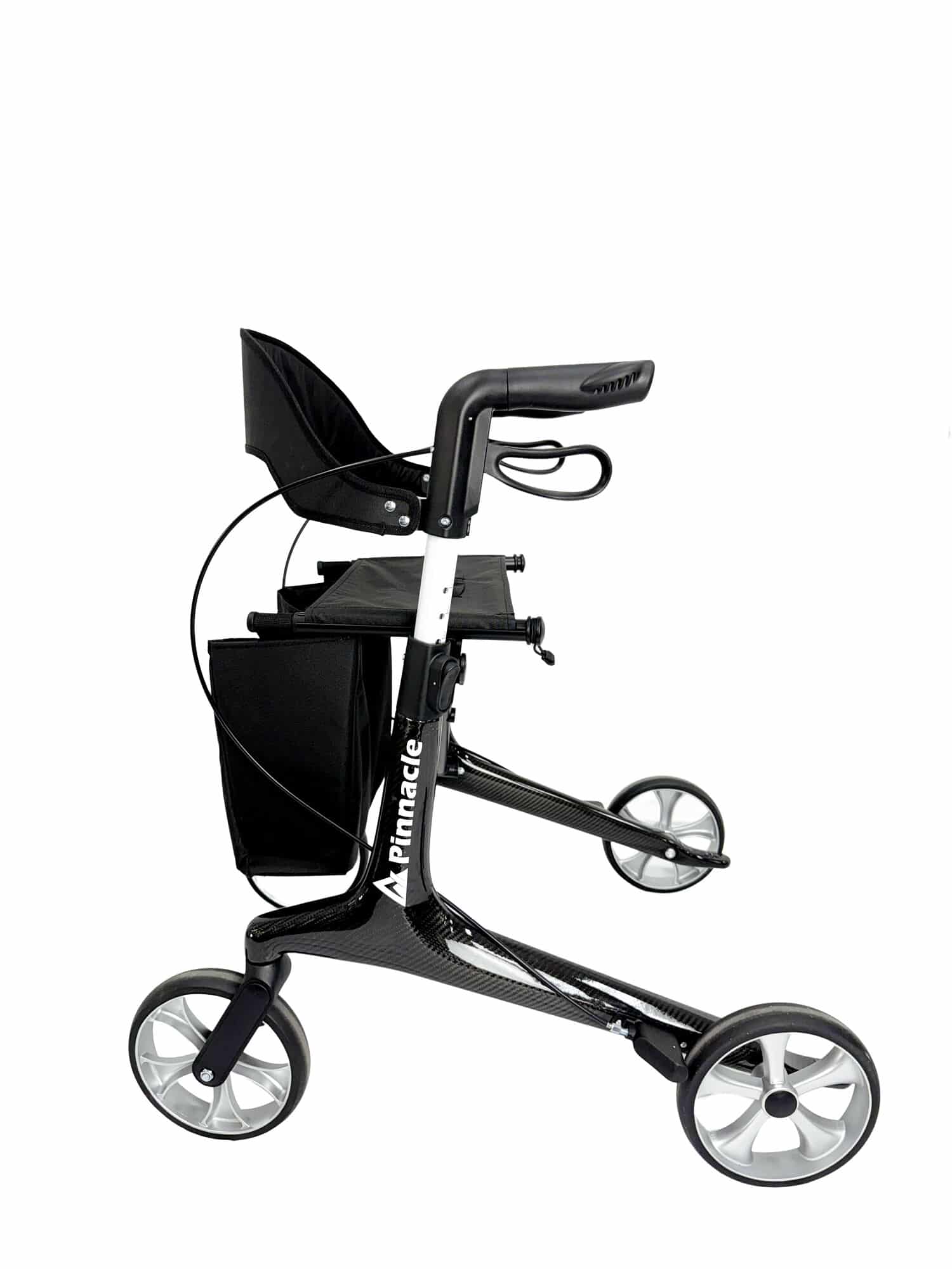 The Pinnacle Ultraflex Rollator offers durability with a ultra lightweight 5.5kg carbon fibre frame. Available in red, green, and black, its sleek design ensures smooth mobility, making it an ideal high-performance rollator for reliable portability.